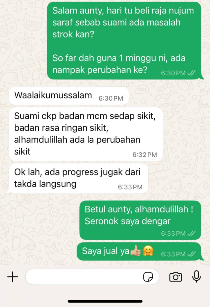 Dengan penggunaan gabungan herba terpilih khas untuk sakit saraf, ada herba yang sukar ditemui, ada yang tumbuh di kawasan tertentu sahaja, dan ada pula yang memerlukan proses peraman berminggu-minggu untuk memastikan khasiatnya benar-benar meresap. Kami memilih setiap herba dengan teliti bagi menghasilkan formula rawatan sakit saraf yang berkesan dan selamat digunakan!